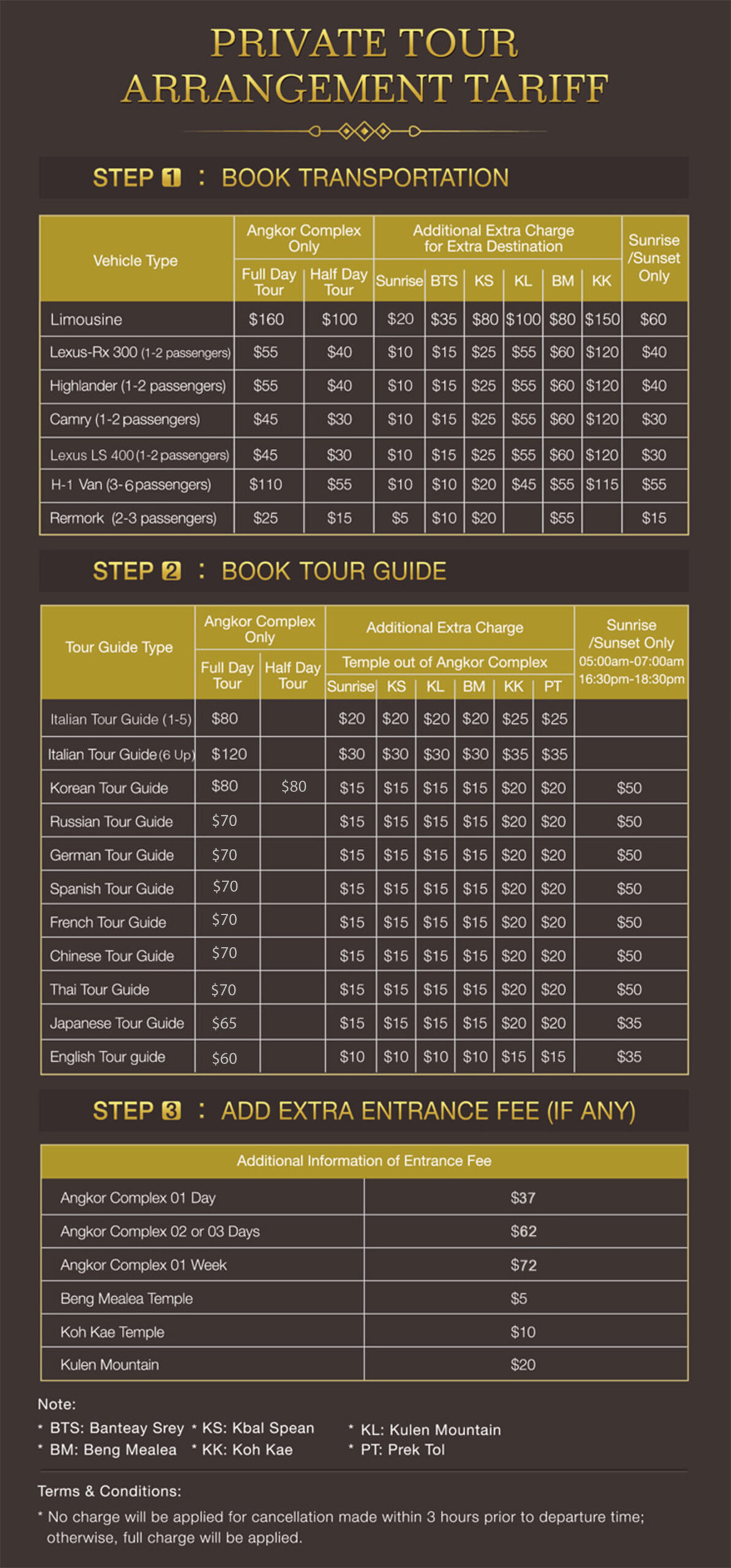 * For the prices of tour arrangement, please click the button Tour Tarrif below.